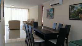 Apartamento impecable con amplia sala comedor , den, baño de visita, balcón con vista al mar y a la ciudad, 3 recámaras cada una con baño, walking closet en la recámara principal, cocina con entrada de servicio independiente, desayunador, lavandería y cuarto de servicio con baño. Sólo 2 apartamentos por piso,
