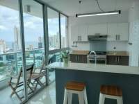 Se Vende Hermoso, iluminado, y confortable, apartamento con excelente vista al mar, tipo loft, totalmente equipado, listo para habitar, 2 recamaras, con rollers, aires acondiconado, linea blanca, 3 banos, 1 puesto de estacionamiento. piscina, parque infantil. cancha de squash, salon de fiesta, gym, sauna, cancha de Basket, etc. Excelente oportunidad.